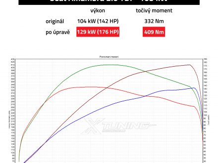Po úpravě - 129 kW (176 HP), 409 Nm (nárůst výkonu o 34 koní a točivého momentu o 77 Nm)